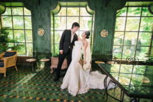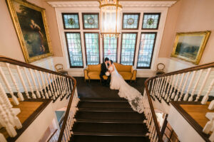 One of the most striking things about Hycroft Manor is the style. The tall columns on the terrace, the beautiful green solarium with the stained glass ceiling, and the stairs inside and outside the building. All the incredible stairs in this place are an opportunity to take another incredible photo. This is one of the reasons I love this venue so much.