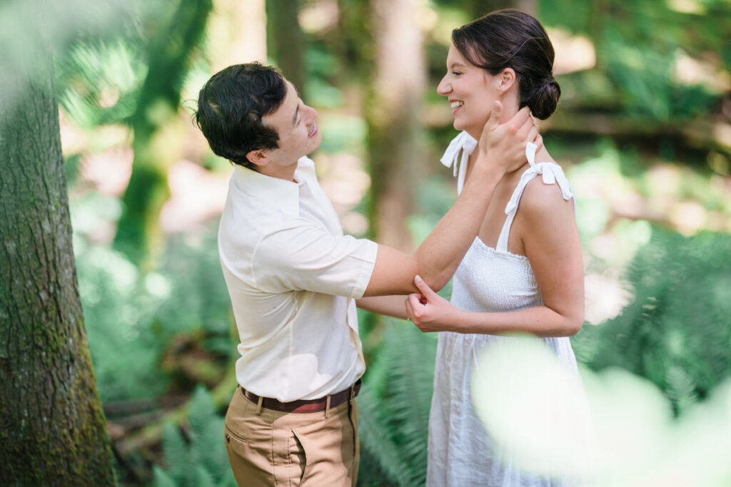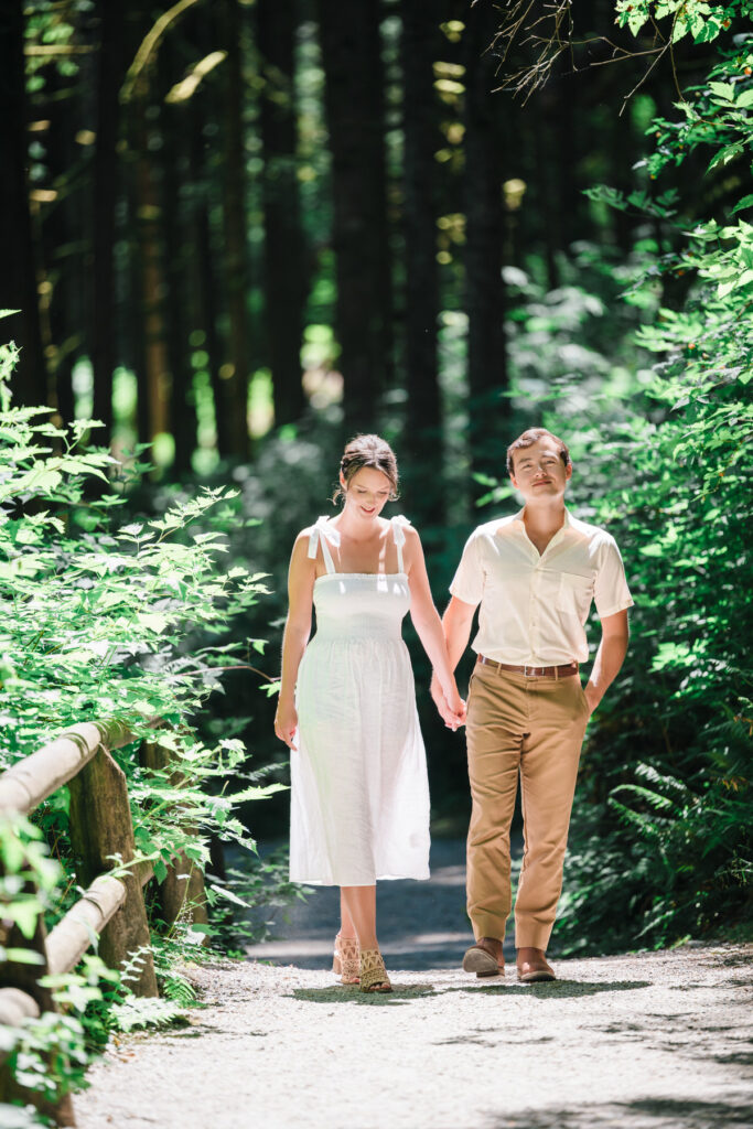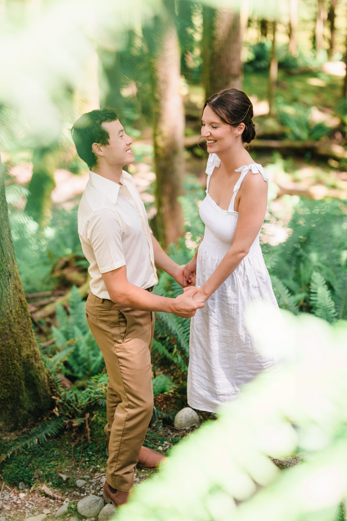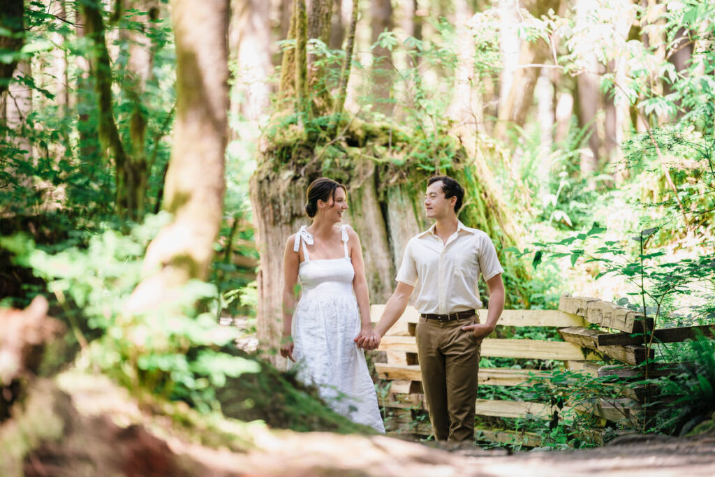 Capilano River Park surprised me. Even in midday light, the trees softened everything in the nicest way. The greenery was vibrant and alive. You don’t need golden hour here. You just need the connection between you.