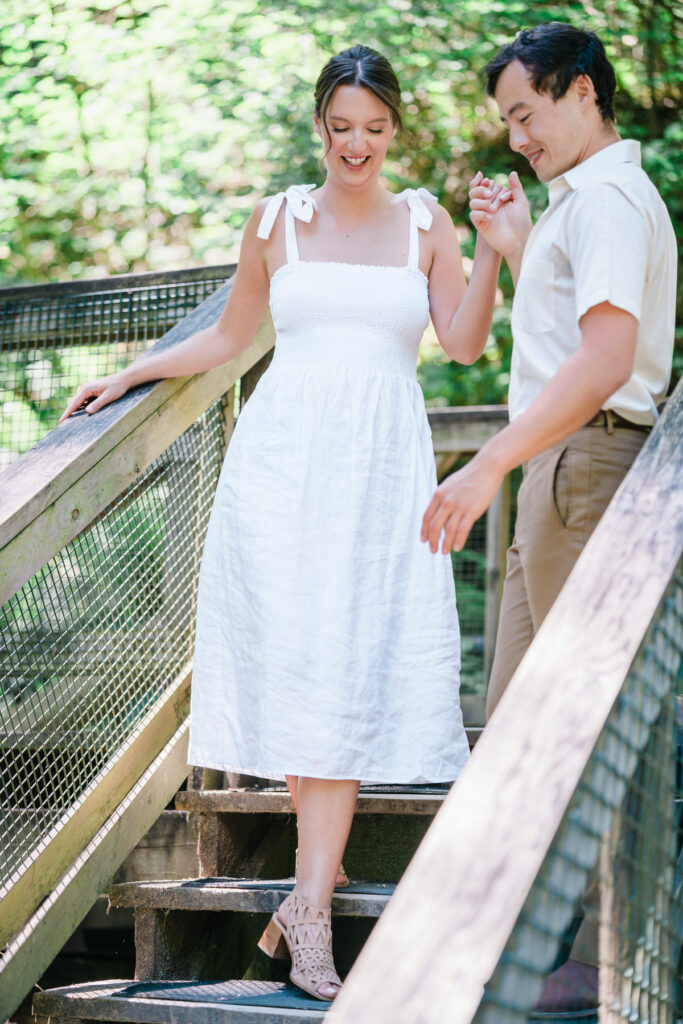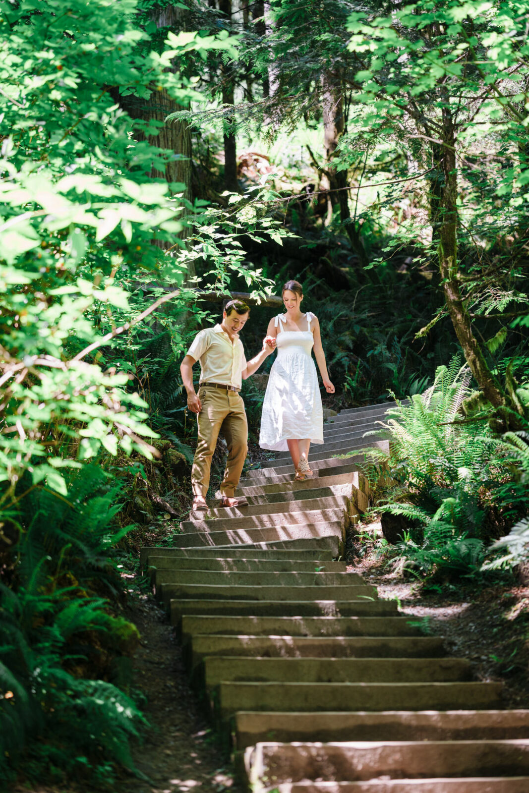 We followed the trails, stopping by the river, the stairs, and a giant tree that looked like it had been standing forever. They held hands. They laughed. They were just present with each other. That’s when the best photos happen.