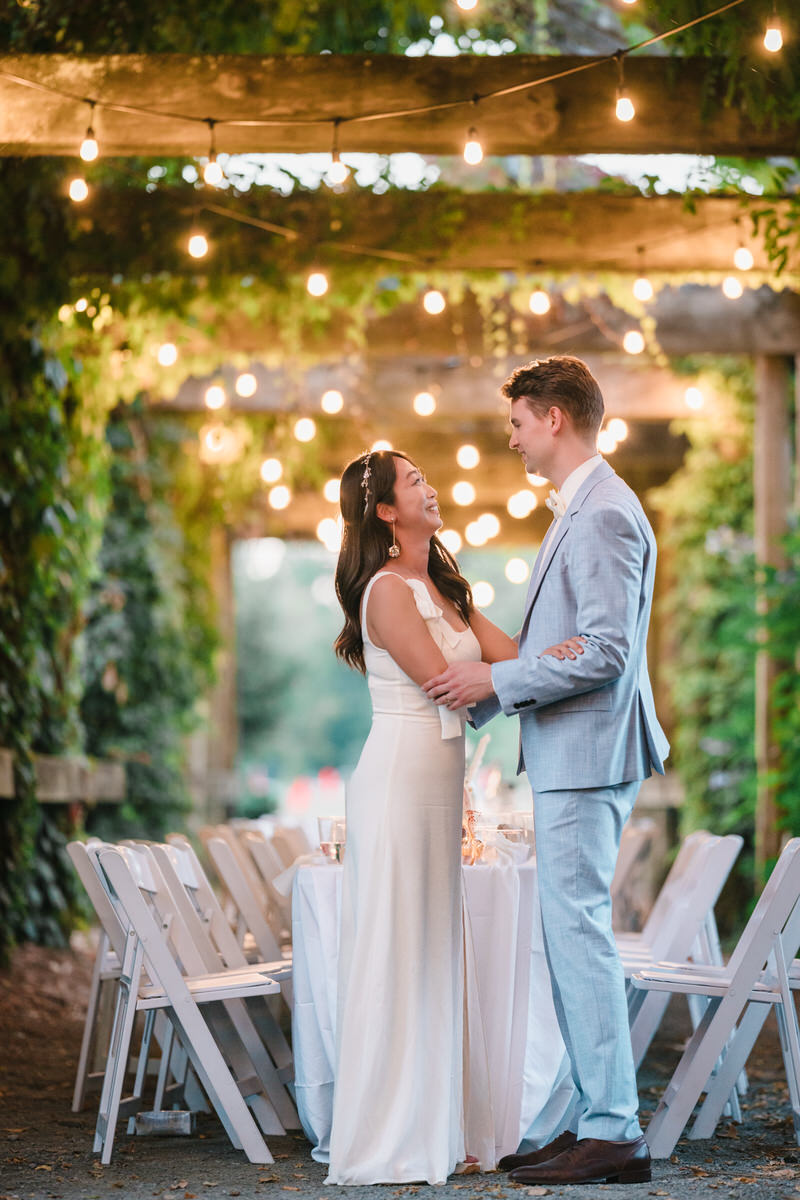 The reception space is completely unique in Vancouver with string lights, lush greenery, and that open-air garden feeling that makes everything feel intimate and warm. It’s more of a blank slate, so you’ll need to bring in your own décor and catering. But if you’re up for a little extra planning, it’s absolutely worth it.