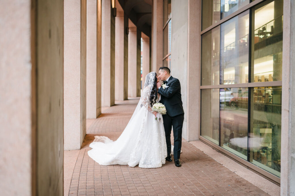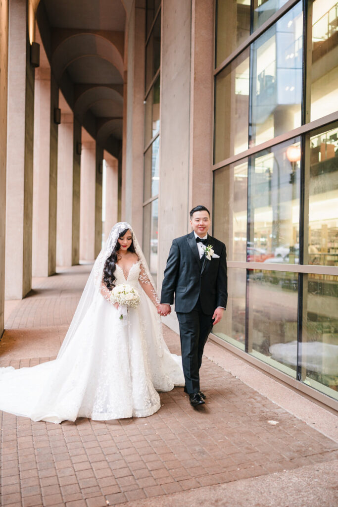 The daytime package puts you on the L8 South Terrace, which is a genuinely beautiful outdoor space with the city skyline behind it. What I want couples to know going in is that this is a partially shared experience. The library is still open and operating around you. That’s not necessarily a problem, but it shapes the feel of the day. If an intimate, contained ceremony with the city as your backdrop sounds right to you, and your guest list is under 30, this package works well. If you want the building to yourselves, you want the after-hours option.